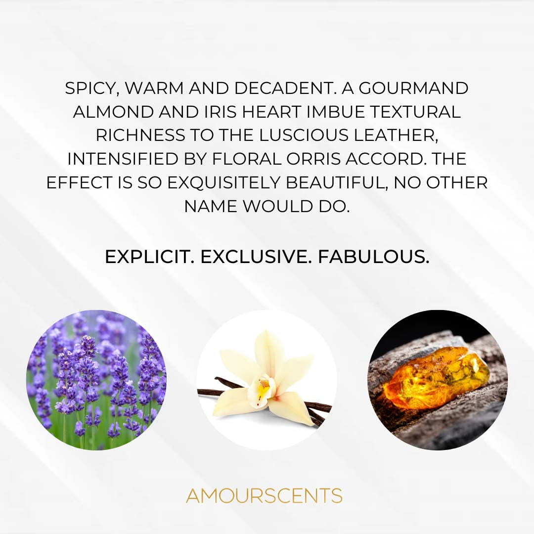 Delectable bitter almond and vanilla inflections infuse textural richness to the leather heart. Drenched in orrisroot from the iris flower, the full luscious body of the supple Italian plongereveals its exquisite Beauty. Addictive tonkabean and lavish leather drive the scent as amber undertones reverberate with a warm glow. Ultra-fine blonde woods create a confident expression of pure luxury with a creamy finish.